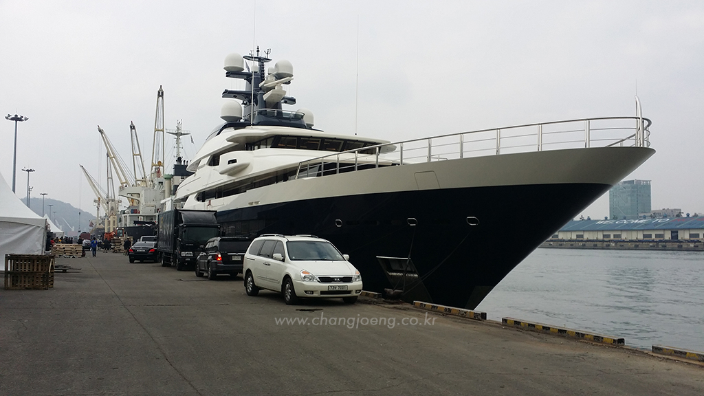 해상에 정박한 요트에 설치한 푼툰 입니다.