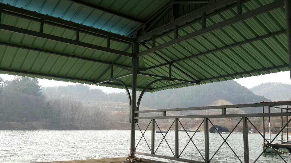 북한강 가평군 복장리 어촌계의 케노피 설치와 호이스트 설치공사입니다